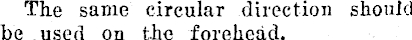 On no account push or rub the skin round the eyes. Massage here should consist of a series of gentle taps and dabs with the cushions of the fingers, well creamed.
