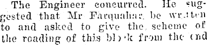 The Engineer concurred. He. suggested that Mr Farquaha :\ be Avr.-t ten to and asked to give tlie. scheme of the reading of this bl >*k from the* end