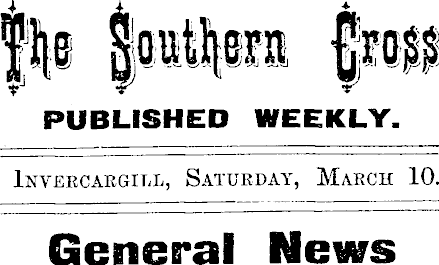 The Southern Cross PUBLISHED WEEKLY. Invercargill, Saturday, March 10. General News