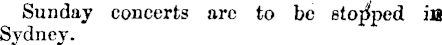 Sunday concerts arc to be stopped ia Sydney.
