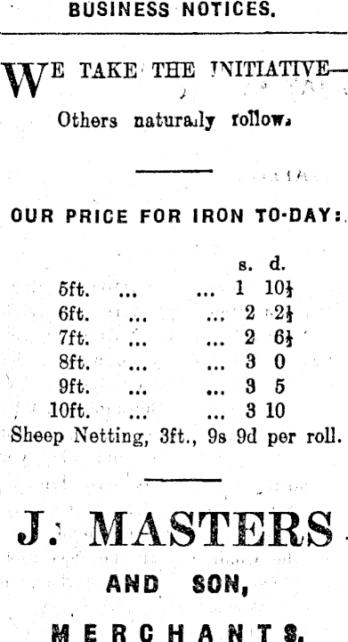 BUSINESS NOTICES. w E TAKE THE INITIATIVE — Others naturally tollowj OUR PRICE FOR IRON TO-DAY: J. MASTERS AND SON, MERCHANTS.