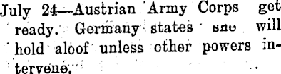 July 24—Austrian Army Corps got ready. Germany states sno will hold aloof unless other powers intervene.