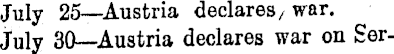 July 25—Austria declares, war. July 30—Austria declares war on Ser-