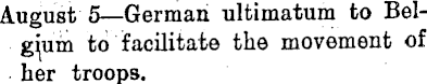 August s—German ultimatum to Belgium to facilitate the movement of her troops.