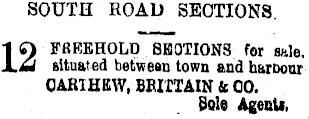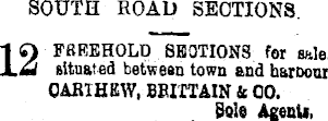 SOUTH ROAD SECTIONS. FREEHOLD SBOTIONS for ssle, situated between town and harDonr CABIHEW, BBIITAIN & 00. Sole AgenU,