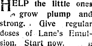 ELP the little ones ~~> grow plump and strong. .• Give regular doses of Lane's F:m,u!= sion. Start now. u