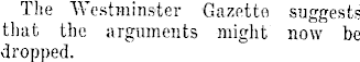 The Westminster Gazette suggests that the arguments might now be dropped.
