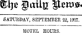 The Daily News. SATURDAY, SEPTEMBER 22, 1917. HOTEL HOURS.