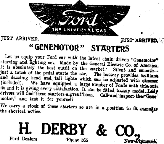 1 < JUST ASRIVED. "GENEMOTOR" JUST" AKBIVE& i? STARTERS starl? ft™ F °f d r J wit ' l the chain driven "Qenemotorstartmg and fighting set. Made by the General Electric Co. of America It is absolutely the best outfit on the market • Silent and just a touch of the pedal starts the car. ThetettervtwSL wfc and dazzling head »4. toil lights which can teS SS . We have a lw ?a number of Fords with thiaxraU. fit and it is giving every satisfaction. It can be fitted to*uy model lZ» dnvere will find' 1 these starters CalKand uiotor, and test it for yourself. ■ the shortest Se° f theß6 S ° BiU ° n 40 H. DERBY & CO., Ford Dealers 'Phone 356
