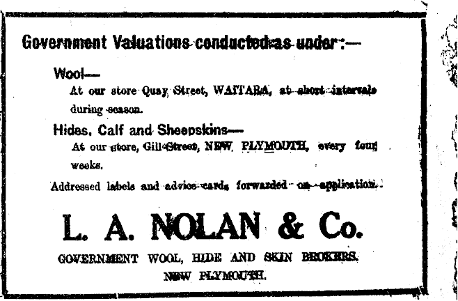 Gwerftment Vakiatioaswmdactwla* widerWool— At our store Quay, Street, WAITABA, ab«i»*t4*ter»«|» during -season. Hides. Calf and Sheepskins— At our fltore, <3iU«6treet, NHW, PLYMOUTH, eWay tanj weeks. Addressed laheU aad twTMM'ti •■aflt)ljnatku»>. L A. NOLAN & Co. GWERNSIENT WOOL, HIDE AND 8&IN BBCKBK& mm sxxMocm