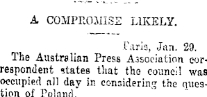 A COMPROMISE LIKELY. Paris, Jan. 29. The Australian Press Association correspondent states that the council was occupied all day in considering the question of Poland.