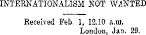 INTERNATIONALISM NOT WANTED. Received Feb. 1, 12.10 a.m. London, Jan. 29.