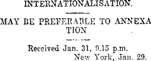 INTERNATIONALISATION. MAY BE PREFERABLE TO ANNEXA TION Received Jan. 31, 0.15 p.m. New York, Jan. 29.