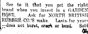 See to it that you gut the ri»ht brand when vou invest in a GARDEN HtigTC. Ask for NORTH BRITISH ißlfflßEfc'CO.'S make. Lasts, for years —does not burnt, waek or brad. SoM * "