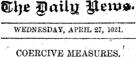 The Daily News. WEDNESDAY, APRIL 27, 1921. COERCIVE MEASURES.