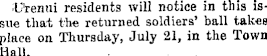 U'renui residents will notice in this issue that the returned soldiers’ ball takes place on Thursday, July 21, in the Town Hall.