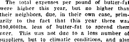 The total expenses per pound of butter-fat were higher this year, but no higher than their neighbors, due, in their own case, primarily to the fact that this year there was 100,0001bs. less of butter-fat to spread them over. This was not. due to a less number of suppliers, but to climatic conditions, and also