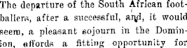 The departure of the South African footballers, after a successful, aiyl, it would seem, >i pleasant sojourn in the Dominion, affords a fitting opportunity for