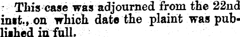 ' This case was adjourned from the 22nd init., on which date the plaint was published irifull.
