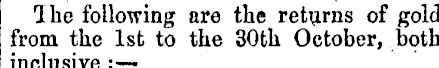 Ihe following are the returns of gold from the Ist to the 30th October, both inclusive :—