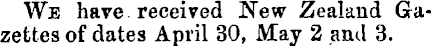 We have. received New Zealand Gazettes of dates April 30, May 2 and 3.