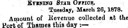 KVININGI STiB O*MOB, Tuesday, March 26,1878. Amount of Itevenue collected at the tfort'of Thames this day :—•