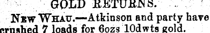 GOLD EETUBNS. New Whau. —Atkinson and party have crushed 7 loads for 6ozs lOdwts gold.