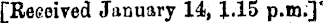 [Received January 14,1.15 p.m.]*