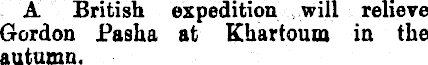 A. British expedition will relieve Gordon Pasha at Khartoum in the autumn.