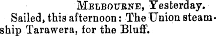 Melboubne, Yesterday. Sailed, this afternoon: The Union steamship Tarawera, for the Bluff.