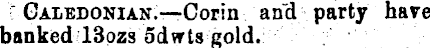 : Gaiedonian.—Corin and party have banked 13ozs ddwts gold. :