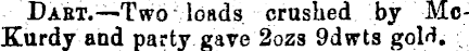 Dabt.—Two loads crushed by McKurdy and party gave 2ozs 9dwts goW.