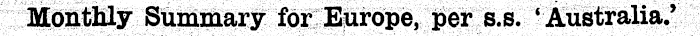 Monthly Summary for Europe, per s.s. 'Australia.'