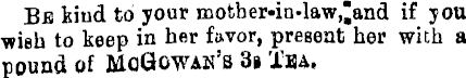 Bfi kind to your motber«in-law,'and if you •wish to keep in her favor, present her with a pound of MoGowah'b 3» Xba,