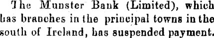 Ihe Munster Bank (Limited), which has branches in the priucipal towns in the south of Ireland, has suspended payment.