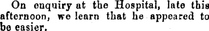 On enquiry at the Hospital, late this afternoon, we learn that he appeared to be easier.