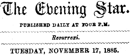 The Evening Star. PUBLISHED DAILY AT FOUR P.M. Resurrexi. TUESDAY, NOVEMBER 17, 1885.