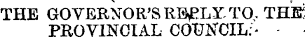 THE GOVERNOR'S REPLY TO THE PROVINCIAL COUNCIL.