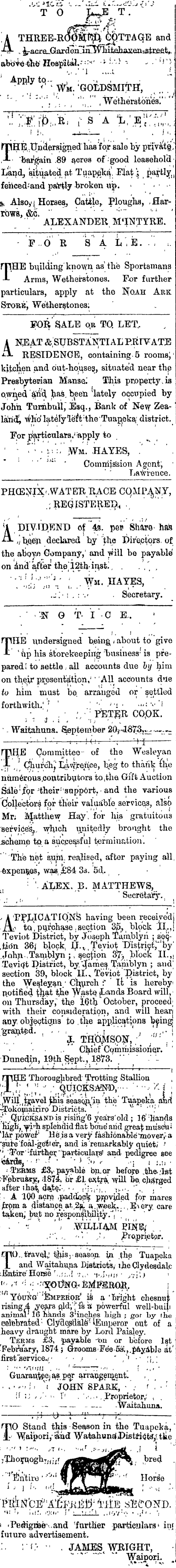 608Page 4 Advertisements Column 3 Tuapeka Times, Volume VI, Issue 295, 25 September 1873, Page 4
