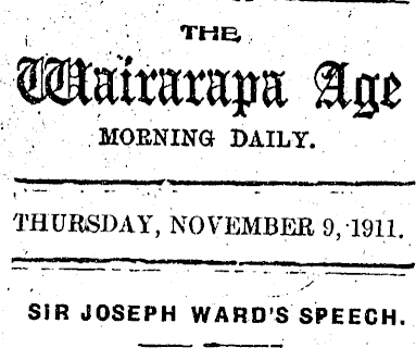 1,271THE Wairarapa Age MORNING DAILY. THURSDAY, NOVEMBER 9, 1911. SIR JOSEPH WARD'S SPEECH. Wairarapa Age, Volume XXXII, Issue 10473, 9 November 1911, Page 4