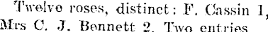 Twelve roses, distinct: F. Cassin 1, Mrs C. J. Bennett 2. Two entries.