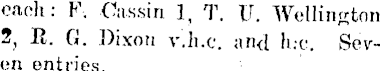 each: F. Cassin 1, T. tl. Wellington 2, R. G. Dixon v.h.c. and h:c. Seven entries.