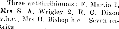 Three aiithirrihinums: F. Martin 1, Mrs S. A. Wrlgley 2, R. G. Dixon v.h.c., Mrs H. Bishop h.c. Seven entries