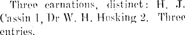 Three carnations, distinct: H. ,T. Cassin 1, Dr W. H. Hosking 2. Three entries.