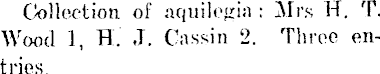 Collection of aquilegia : Mrs H. T. Wood 1, H J. Cassin 2. Three entries.