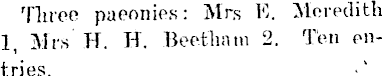 Three paeonies: Mrs E. Meredith 1, Mis H. H. Beetham 2. Ten entries.