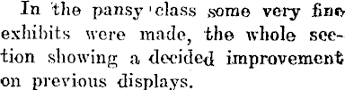 In the pansy 1 class some very £ni> exhibits were made, the whole section showing a decided improvement on previous displays.