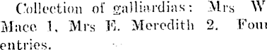 Collection of galliardias: Mrs W. Mace 1, Mrs Fj. Meredith 2. Four entries.