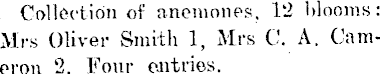 Collection of anemones, 12 blooms: Mrs Oliver Smith 1, Mrs C. A. Cameron 2. Four entries.