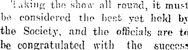 'iukinrr tho show all round, it mu.'-t be considered the best yet held by the Society, and the officials are to be congratulated with the success